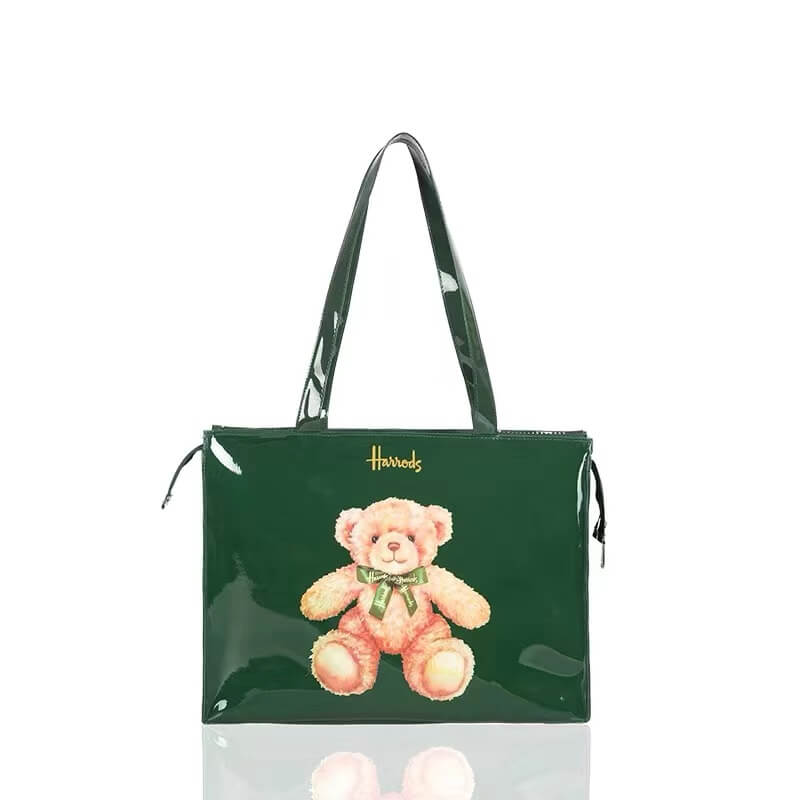 Custom fashionable print design glossy mirror tote handle shopping bag with logo waterproof PVC harrods tote bag